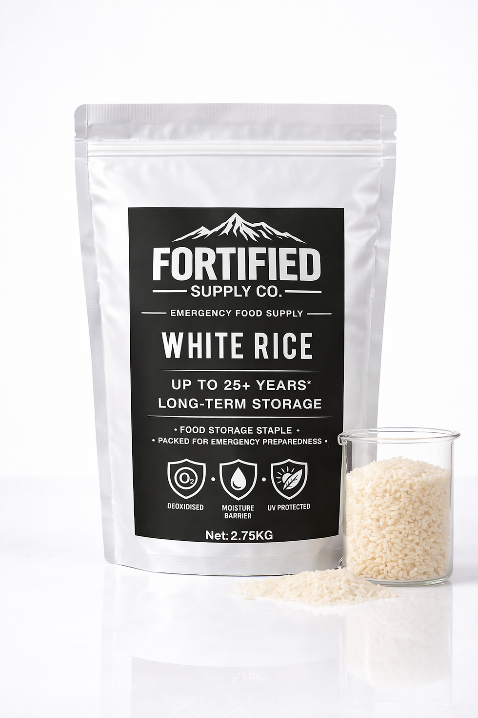 Sealed in a robust, moisture-proof and deoxidised pouch, this offering provides 2.75kg of white rice, perfect for a quick, energy-rich meal during critical situations. Its long-term storage capability makes it a reliable pantry staple. This method of storage has been known to preserve foods for upto 25 years.